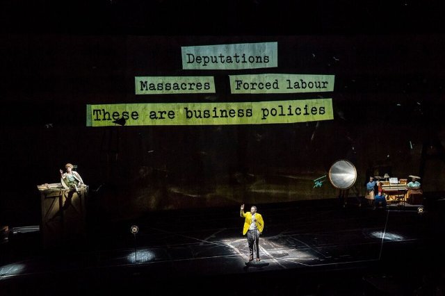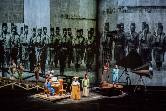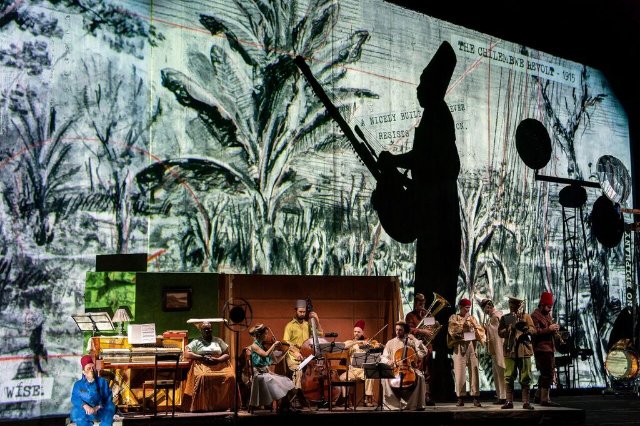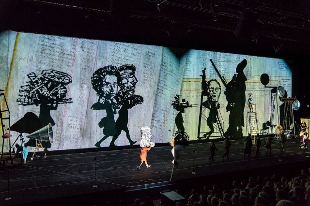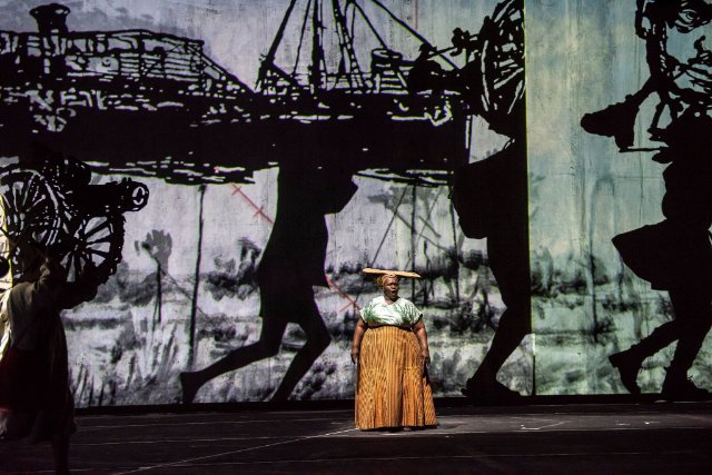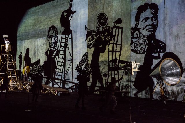 These men were heavy lifters and served their superiors by carting food, clothing as well as guns and at least one bullet. Their contribution was indispensable, if unacknowledged. Kentridge is calling them to our attention in a wondrous pageant. The evening feels like a procession, both celebration and dirge. Cultures are both celebrated and crushed.