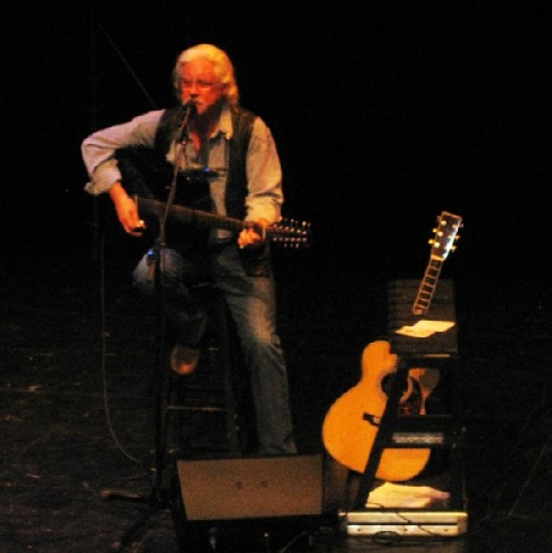The set jingle jangled and ambled along. Arlo referred to that informality with wonderful humor. He described how he used to plan out a set and tape the song list to his guitar. But when he reached 50 (born in 1947) he couldn't read it anymore. The audience cracked up at that revelation. There was also some fumbling about with harmonicas and endless tuning between songs. Revealing his ineptness and gonzo stage manner at one point he captured our hearts by exclaiming that thank heavens it was "only a benefit."