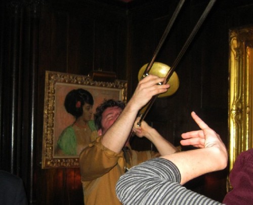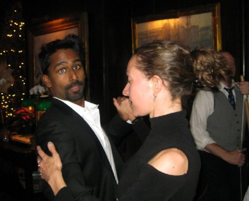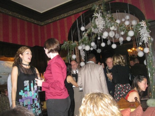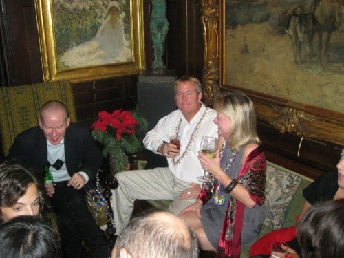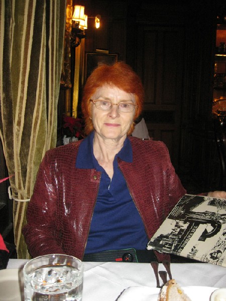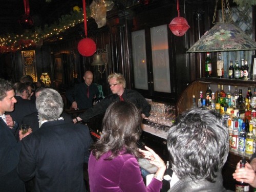 It was a busy evening at the National Arts Club on Grammercy Park during our recent Holiday visit. There was an opening in the gallery as well as a private function in the back dining room.We enjoyed a superb meal, as usual, in the Tiffany designed dining room. I had roast boneless breast of duck and Astrid enjoyed the rack of lamb. For me followed by a snifter of Remy Martin. Ah the good life.