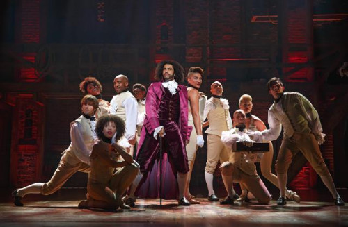 The thirty-two cast members that breathe life into this highly entertaining history lesson with a beat on the rise and fall of Alexander Hamilton, move as one, never out of step, never out of the moment. It’s a visual feast both for the eyes and the ears of the audience. It also introduces Hip-Hop with a blending of Rap as the platform of preference in entertaining its audience. We’re not talking ‘gangsta’ rap’ here. We’re witnessing the birth of a new communication/entertainment platform for future musical productions. Hip-hop style, with its rhyming and propulsive lyrics and dance movements, more and more reflects the society in which millions live.