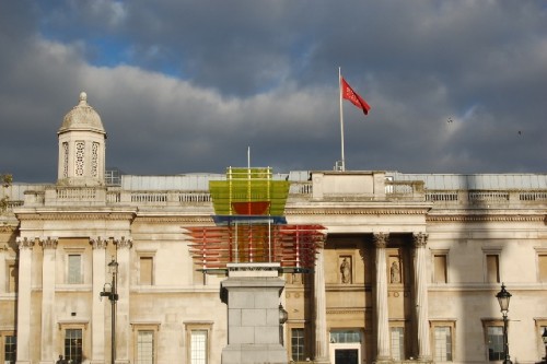 Public Art in the best of circumstances can be controversial, mediocre or just bad or unjustified. London and all of the UK seem to have a much more adventurous spirit in regard to public art than we do in New England. For the past few years, there has been a public art initiative in the heart of perhaps London's most visited ceremonial public space, Trafalgar Square. The public art projects are placed there for a year or two and then changed to another artist's work. The placement is at the Fourth Plinth.