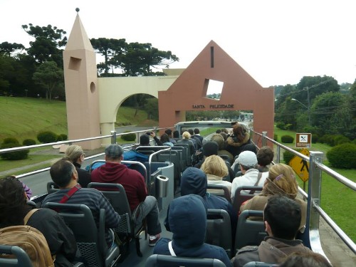 A city tour by Linha Turismo seemed a good choice to spend my limited time left in Curitiba. Available every 30 minutes, the two-and-a-half-hour tour goes 46 kilometers all around the city, highlighting parks, squares, and other points of interest for about $3; the cost of a voucher for those who wish to get on and off the bus is $12, allowing four stops. I chose to sit on the upper deck with the top down to be able to take pictures; fortunately, I had a windbreaker with a hood, or I could not have enjoyed the windy panorama. Among the highlights were Santa Felicidade, the Italian neighborhood and Curitiba’s main gastronomic center with its typical, historically preserved houses, and upscale neighborhoods on the hills with sweeping views of the city.