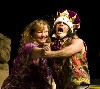 This farcical production involved bathos and physical comedy. The actors were running all over the theater including through rows of delighted visitors. The kids were just thrilled with this. The Evil Sisters threw themselves all over the stage. Mopping it up in, of all things, sequined ball gowns. They made themselves out shamelessly as ugly hags while in real life they are surely very nice and attractive women.