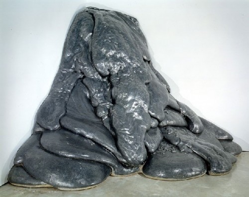 Over her career perhaps the best and strongest works were the poured ones. She used metallic foam in a manner that seemed to give them weight and mass. Like flowing fields of lava. They were poured on floors, filled corners, or projected from walls.