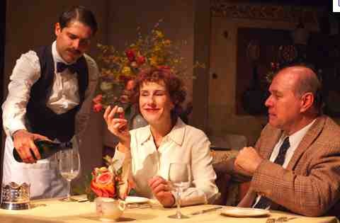 Performances by Karen Janes Woditsch as Julia and Craig Spidle as Paul are balanced and intriguing. Julia's passion for Paul is quickly exposed when she watches the maitresse d’ of his favorite restaurant greet him -- a touch too effusively for Julia’s sense of marital decorum. Woditsch captures Julia’s forthright manner and hearty humor. A fresh, breezy approach to daunting recipes is her nature and worked to encourage home cooks to try what often seemed difficult dishes – like soufflés and foie gras.