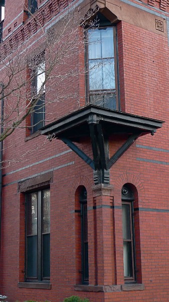 Unusual Bracketed Overhang Detail (Faux Balcony) Monmouth Street, Brookline, MA c. 1875.
