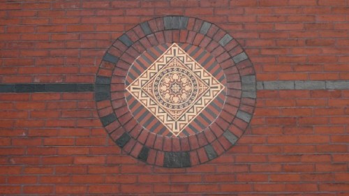 Brickwork and Ceramic Patterned Detail Rosette on Monmouth Court, Brookline, MA, c.1875., architect J. Pickney Putnam.