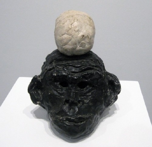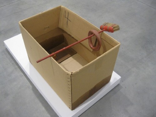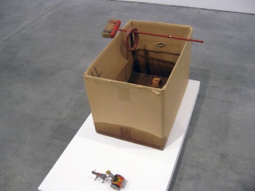 One always approaches Beuys with reverence. He was a master every bit as important to the Post War German generation as was Duchamp to his era. There is an impulse to worship rather than simply observe his work. The sled was readily familiar and accordingly evoked knowing nostalgia. But the exhibition also included a piece I encountered for the first time. It took a moment and a check on the label to even identify it as a work by Beuys. Then it unraveled with the familiar element of fat leaching into the cardboard box which included disparate other elements like a small broom resting on top and a small child's toy just in front of the sculpture.