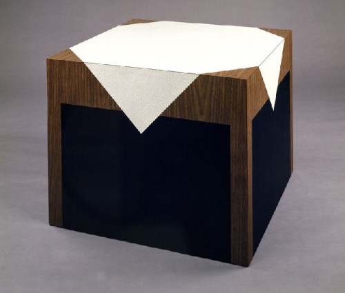 It was rather annoying to find myself in the wake of an eager Whitney docent. Undoubtedly, she is the graduate of an intensive program of critical studies based on a densely theoretical analysis of the objects. There was overkill as she explained the use of negative space in a mid sized cube which, when deconstructed, coughs up the imagery of a table with white cloth on top set to accentuate a diamond pattern. Her commentary offered not a hint of humor or irony.