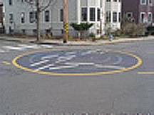So almost by default, the City of Cambridge is the model for all other Massachusetts municipalities, and thus almost by default it sets itself up for criticism as well as praise. The intellectually praiseworthy Walden Street Project is a visionary attempt at using public art experimentally, functionally and economically. Generated from an idea by Cambridge Community Development Director Juan Alvendano from the notion that public art had a traffic slowing effect in West Coast cities, it was suggested that a painted circle or crosswalk be developed and tested for the busy intersection. The city's Environmental and Traffic Division collaborated with the Cambridge Arts Council.