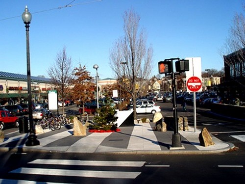 Recently and rather unexpectedly in the City of Cambridge, two public art projects have attempted to improve transportation and pedestrian safety and function. One is a painted roundabout or traffic circle in the densely residential Walden Street neighborhood by artist Wen-ti Tsen. The other is a plaza and crosswalk centerpiece by Toshihiro Katayama for the often hectic Porter Square. While the former is excitingly experimental, the latter is visually and practically rather unnecessary.