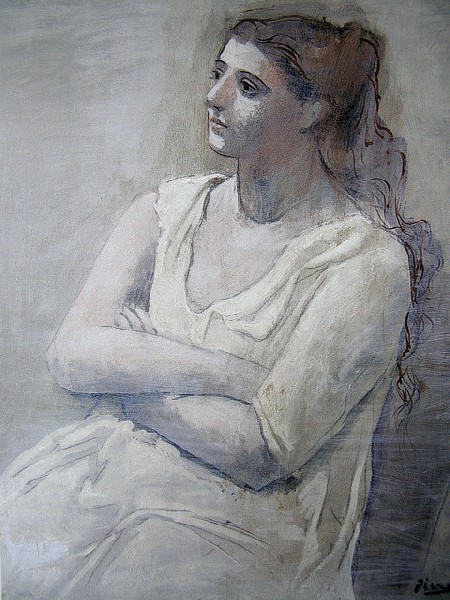 As part of the research for the 1997 MoMA exhibition Picasso and Portraiture: Representation and Transformation William Rubin identified the enigmatic, sensual, classical woman as Sara the wife of the rich, American, artist/ dilettante, Gerald Murphy. The jury is still out as to whether his advances on Mrs. Murphy were successful. But as one of the great beauties of her era, as evidenced in this singular masterpiece, there is little doubt that he coveted her. It was usual for Picasso to seduce the wives and lovers of his friends.