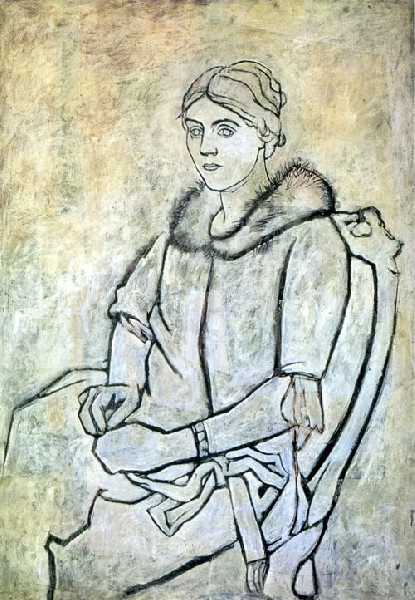 There are just three other great works in this Guggenheim exhibition; two line drawings on canvas of his wife Olga which I had never previously seen, and, from the Blue Period, the riveting Laundress.