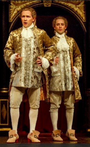 An excellent actor on the operatic stage, Davies imagined that he would be uncomfortable as a doppelganger. In fact, the divided person works well in the story. Farinelli does not feel that he is singing when he sings. The voice feels detached and as though it does not belong to him. In this staging it does not. Davies gets the juicier role as 'voice.'