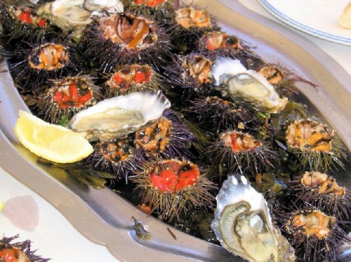 The Atlantic coast is dotted with resorts; however, it was still early for the summer buzz. We stopped at a seafood restaurant for lunch. As soon as the platter of fresh oysters and sea urchins arrived as an appetizer, we all reached for our cameras to document this incredible display. Since eating a sea urchin was a new experience for me, I had to learn how to scoop out its roe. The main coarse was fried sardines, flounder and red snapper, followed by orange tart with the rind intact.