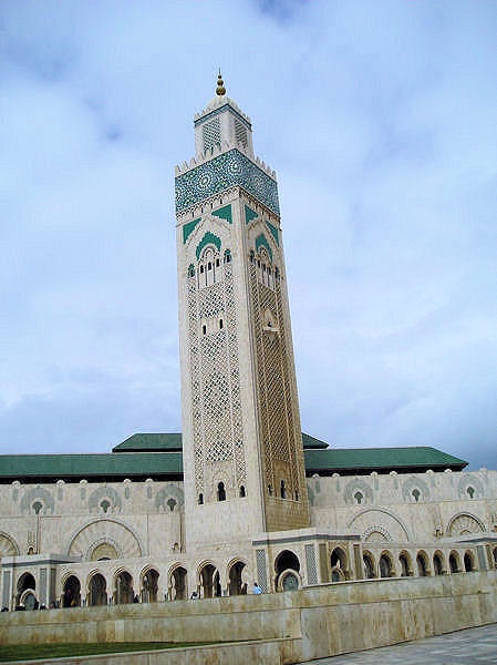 Our main excursion was to the Hassan II Mosque, second only to Mecca as the largest religious monument anywhere. Inspired by the Koranic verse "The Throne of God was on water," His Majesty the late Hassan II had it erected partly on water. This grand edifice of the 20th century, built by public donations, sits at the edge of the Atlantic Ocean, its 200-meter-high minaret visible from all corners of the city. The prayer hall, holding 25,000, has a movable roof, which accommodates 100,000 worshippers when raised. Two hanging mezzanines with fine carvings are reserved for women. The ablution hall with 41 fountains and the two tiled baths are the jewels of this Arab-Islamic architecture. The boardwalk of Casablanca is called "La Corniche," French being Morocco's dominant language. We strolled along the boardwalk lined with teahouses, fish restaurants and even a MacDonald's. The Sunday promenade with children in tow blended modest Arab elegance with African flair, as women in jalabas of somber tones walked about sporting headscarves in bright blue, lime green or saffron. Those with dark head covers wore lavender or pink jalabas, delighting to the unaccustomed eye.