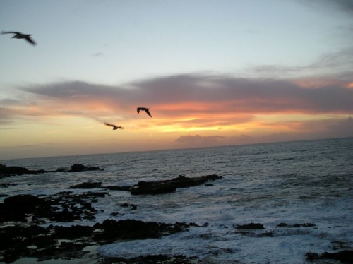 The sunset over the Atlantic was the highlight of the day. I sat on the wall near the ocean, watching the blue sky shift into streaks of orange, red, yellow, pink and deep purple. The vast canvas of color formed a backdrop to flying seagulls that seemed to be rushing home to beat the night. I took two-dozen photos until the sun was no longer at the horizon.