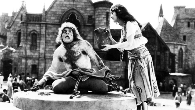 Directed by Wallace Worsley, Universal’s largest-scale silent film played a large part in making Lon Chaney a legend. It paved the way for the rest of their enduring legacy of gothic horror from the golden age of film. In The Hunchback of Notre Dame (1923; 2 hours, 13 minutes), Quasimodo (an inarticulate, deformed human being, who is the bellringer of the Cathedral of Notre Dame) sacrifices his life to save Esmeralda (a Gypsy girl who once befriended him) from Jehan, the hunchback's evil master and brother to Dom Claude, chief priest of the cathedral.