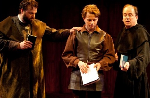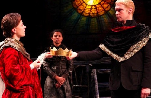Sean McNall gave us an unusually innocent Richard, befuddled by power and then, without a fight, acceding to his cousin, Bolingbroke. Played brilliantly by Grant Goodman, Bolingbroke’s language takes us right to the present and answers a question Ralph Fiennes raises in his film Coriolanus. How do you bring Shakespeare’s now question right into the now. The basis of this has to be in the tone and shape of the language. If actors who inhabit these roles are processing the thoughts of their characters in the same moment that they are delivered, we as audience are right with them.