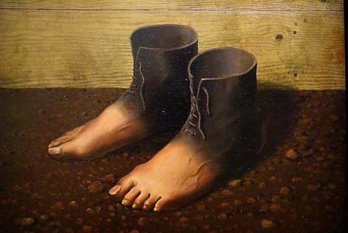 During a recent romp through the MoMA exhibition it was great fun to revisit old friends. How droll of the artist painting his own woman in the tradition of Pygmalion. What a hoot to encounter depictions of shoes in the form of feet. Ages ago we unraveled the pun of “Ceci n'est pas une pipe” No it is not a pipe. It’s a painting of a pipe. Or the enclosed framed area of a painting with the word “Ciel” which signifies but does not render the sky.