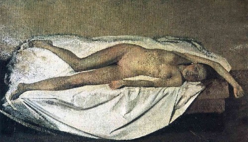 One of the most interesting works “The Victim” reveals what might have been. Rather like a nude by Modigliani we encounter a prepubescent girl occupying the large horizontal canvas somewhat akimbo. Focusing on her face it is unclear if she is dead or alive. Just what has she been the victim of as the title states? There is ambivalence that some interpret as the artist’s response to the war when the painting was created.