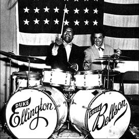 Like the Blanton/ Webster era the band took off in new directions when it retired lesser players and hired better ones. Like original member, drummer, Sonny Greer (an alcoholic with diminished skills) replaced by the white musician Louis Bellson ("Skin Deep") then Sam Woodyard. These “infusions” included the Puerto Rican valve trombone player Juan Tizol (“Caravan”) the Cape Verdian Gonzalvez, trumpet player, Ray Nance, who also played violin, sax player, Russell Procope, trumpet player Cootie Williams and the various trombone players who covered for plunger mute trombone player Tricky Sam Nanton (February 1, 1904 – July 20, 1946).
