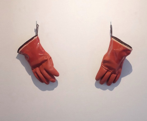 Skull Whispering by Sands Fish and Don Blair (2015) made use of wireless technology and mobile devices. Through a bone conductor, two individuals were invited to connect to each other in an intimate yet weirdly disconnected arrangement. One station acts as the transmitter; the other as a private recipient. Sounds reverberate through the recipient’s skull. Making use of a pair of rubber gloves, the installation showed how the walls between our minds can be erased.