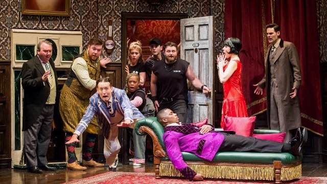 The set design by Nigel Hook is elegant (until it falls apart) and it’s that element that won the play a Tony award in 2017. Set design, not the play itself. To be fair, it also won the Broadway.com Audience Choice Award for Best Play. But it is repetitively, mindlessly silly and relies on old, wornout humor, both physical and verbal. (See my explainer below on my 2-star rating.)