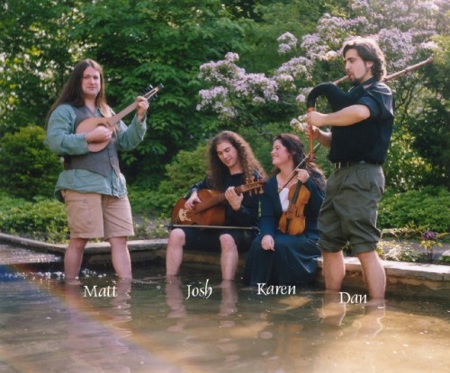 Founded in 2003 in Cambridge, Massachusetts by four gifted young musicians, Daniel Meyers (recorders, flutes, pipe and tabor, bagpipes, baritone), Karen Burciaga (Renaissance violin, treble viol, mezzo-soprano), Josh Schreiber (viola da gamba, bass), and Matthew Wright (lute, cittern, guitar, tenor), all connected in some way with the Longy School of Music in Cambridge. They specialize in the English consort repertoire of the 16th and 17th centuries, most familiar to most of us in the ensemble music of Thomas Morley, John Dowland, and William Locke. Their name comes from Laertes' exclamation of his grief in Hamlet, Act IV, Sc. v and refers to the melancholy music of which Dowland ("semper dolens") and other Elizabethans were such great masters. Saturday evening they were joined by WEM co-founder Allison Mondel, soprano, who performed most of the solo vocal parts. Ms. Mondel, who has an MA in Early Music Vocal Performance from Longy, has appeared at the Boston Early Music Festival and the New Opera of Williamstown. She has also pursued research on the Montpellier and Las Huelgas manuscripts as well as the notation and performance of the chants of Hildegard von Bingen. As harmonious as she appeared to be with her collaborators, she enriched the evening by adding an additional individuality of particular authority and charm. Her voice is flexible and attractive in all registers, and she projected a thorough command of the music and texts, whether they were pastoral, devotional, humorous, or simply full of jolly spirits.