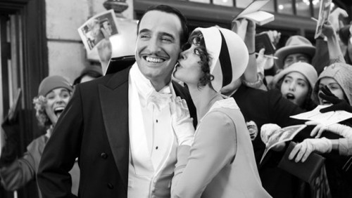 Set in 1927-1932 in Hollywood and handsome swashbuckling, acrobatic and carismatic George Valentin (think Douglas Fairbanks even to his elegant mustache) is a silent movie idol. During the premiere of his latest film, The Russian Affair, Valentin bumps into lovely Peppy Miller. She is a star-struck extra and aspiring actress. He gives her a small dancing role in his next picture. As their flirtation progresses, Peppy's career begins to take off, and Valentin rejects the next new thing, Talkies. Not a good move.
