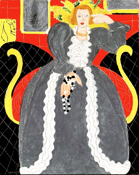 From 1916-1917, we have several images of Matisse's Laurette. We find women posed in the interiors of hotels in Morocco or Nice. Often they seem to be studio props like furniture and bowls of fruit, or the patterns of blinds and drapes. We don't quite know about the women and his relationships with them. Are they lovers or just models? It was the norm for French artists to sleep with the women they painted nude. Except Modigliani apparently. But then, he was not only Italian but Jewish. Go figure.