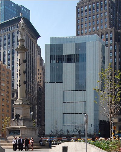 Two structures, very current in architectural dialogue, were written about by Huxtable at the time of their completion. They are as controversial today as they were back then. The first is Boston's New City Hall (1967) and the now The Museum of Arts and Design, the once "Lollipop Building" in New York. Link to review. Uncompromisingly dramatic with rough concrete forms, Boston's City Hall has gone from one of the most celebrated buildings in the world, once ranked 5th best on some best world architecture lists, to the most hated structure in Boston.