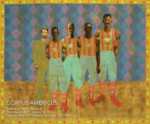 I’ve not been to a wax museum but I can imagine the Frankenstein on display might look something like Corpus Americus, the new group exhibition at Driscoll Babcock. Then again, the better analogy might be in the source material itself, in Shelly’s nameless creature who to this day stalks the starless wilds of our imaginations. For beneath the patchwork of skins stitched loosely into an ungainly whole, there is indeed something alive at the heart of Corpus Americus.