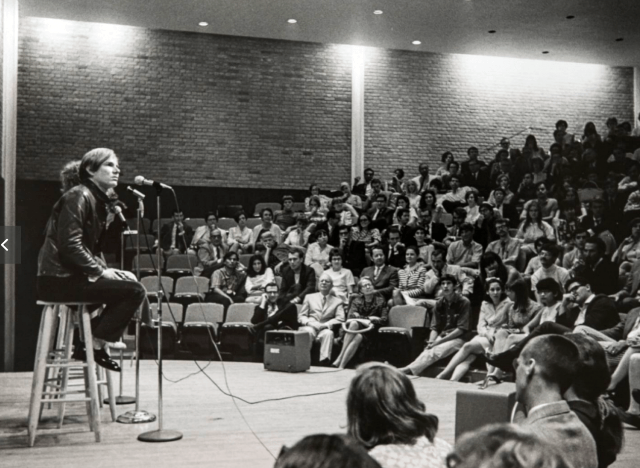 ST: Oh, Warhol, I think he came. You know with Warhol, you’re never sure, you were never sure. He used look-alikes. He was certainly invited here, and we assumed that it was Andy Warhol. We had a simple kind of supper down at that French café that used to be on Berkeley. There were a number of hangers-on that night and—such that I think maybe he didn’t come at all, but that’s not the issue. We had The Velvet Underground, and that performance was, of course, a big test for our audience. They found it very disturbing, a number of people did.