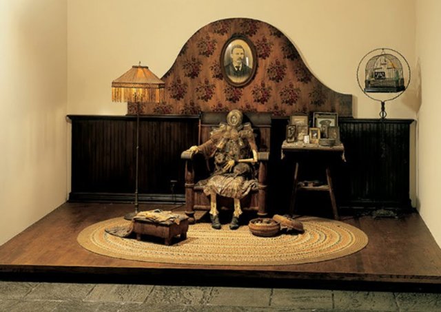 The Wait was a very sad—a sort of sweet-sour sad commentary on old age. In the middle sat a figure, which you thought was somebody’s grandmother. But when you looked back, you realized no, it’s cow bones. These were cow bones making the legs, making the arms. We read it as somebody’s grandmother, this is what he’s telling us in a way, you know, that there are many things that come out the same in our heads. We have this unrecognizable, old person. Somehow, we know it’s a woman. I think we know it’s a woman because of her kinships. She has around her neck, if I remember, beads but these are beads, which I think they have faces of children in them. Everything surrounds her that tells you about her life, and it’s all pretty horrible because you don’t even know that she is still alive. The suggestion is that she isn’t. It’s wrenching. I can’t imagine any woman or a man, but particularly any other woman, who could look at that and give it no mind. I used to go out and look at it every day. That’s one advantage to working in a museum—you can collect in your mind. That’s why I remember it so well.