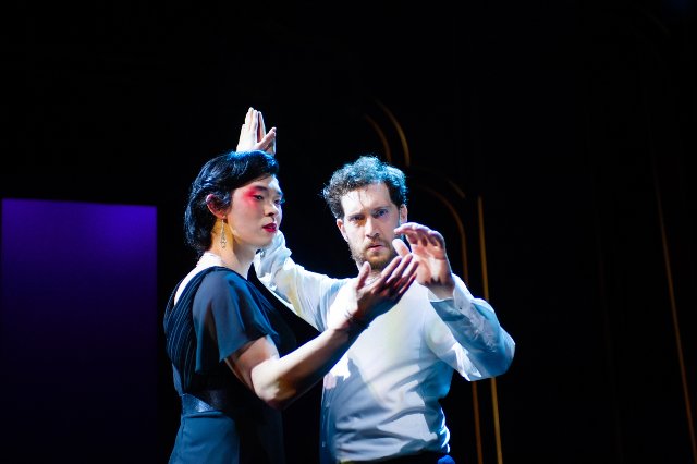 The two leads dominate the action. In Dean Linnard’s portrayal, Gallimard’s contradictions come through. Concise in diction and precise in thought, he is still stumbling and ineffectual. Edric Young captures Song’s fraudulence with grace and conviction, playing the modest and shy card to great effect. They both break the fourth wall frequently which enhances the connectedness of the audience with their characters. Supporting roles are well acted, though they are almost all one-note characters. Andre Amarotico is ebullient as the rascally Marc, while Stacy Ross is breezy and smarmy as the ambassador.