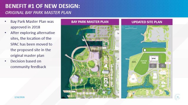 However, Bullock does think the project is “do-able.” He’ll give his recommendation at the March 2 commission meeting during which the Foundation will formally present its new concept to City Commissioners. The Foundation hopes to return to chambers a few weeks later for a formal vote. If the Commission responds favorably, it has projected a timeline for successive steps that ends with completion of the PAC in the summer of 2030. But Bullock warned against being tied to any specific timetable.