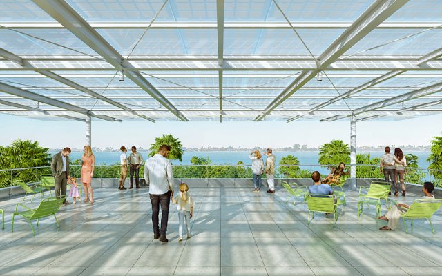 - Height/resiliency: Because the revised location is in an area with a view corridor that requires height restrictions, which the previous site did not have, the buildings will no longer be elevated 20 feet on stilts. Instead, the ground site itself will be elevated 22-26 feet for resiliency, leaving just a small percentage of the main structure that will sit below the FEMA flood line to be protected by a barrier known as a “bathtub.”