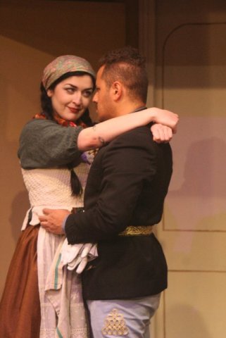 Otherwise, the acting is bright and commendable, particularly from the two male leads.  As Bluntschli, Mitchell Van Landingham, at first seems soft for the role of a mercenary officer, but he displays defined facial expressions and verbal demeanor that make for a winsome characterization.  His battlefield and romantic rival, Major Sergius Saranoff, played by John Mosa’ati, is engaged to Raina, an effective Samira Shahan, whose part however is one-note.  Mosa’ati’s verbal and physical swagger perfectly fit the preening peacock.