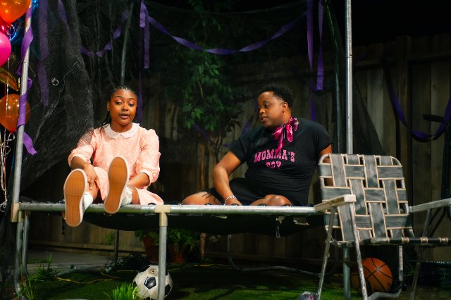 A couple of soliloquies are delivered directly from the script of Hamlet, and Devin A. Cunningham, who soars while inducing empathy for Juicy, delivers them with aplomb. One of particular note begins "I have heard that guilty creatures sitting at a play have .....," which foretells a trap that Juicy will later set for Rev. Also, there are a couple of wink-wink references to the original. An energized Jordan Covington is super-sexed while being pretty explicitly off-color and hyper humorous as Juicy’s cousin Tio (echoing Horatio), who notes that at the end of Hamlet he survives surrounded by the carnage of the other leading characters. Is that repeated in Fat Ham? I’ll never tell.