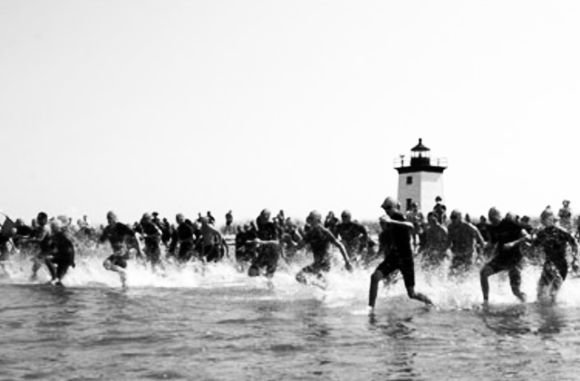 Because of the ever increasing danger of sharks the swim is sited next to the shore as well as in a large pond. “Seals are now protected and have proliferated on the ocean side,” he said. “Sharks including Great Whites have swarmed to feed on the seals. Beaches aren’t safe and surfing is risky.”