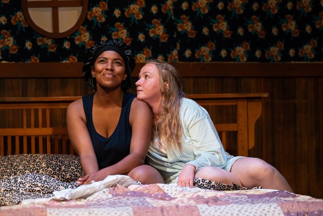 The Cake offers equal parts charm and provocation in a production with fine acting throughout as well as outstanding creative values. Ron Gasparinetti’s expansive scenery, which includes bedrooms on both flanks of the bakery, is appropriate, appealing, and detailed. George Psarras’s sound engages, particularly in the Great American Bake Off sequences when Della speaks with The Voice (Max Tachis), while Sonya Wong’s lighting highlights the action. The integration of designs and pace are exquisitely directed and coordinated by Lisa Mallette.