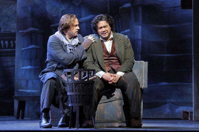Although the melodies in Acts I and II are the most memorable, the final two acts hold their own. Considerable new melodic music is introduced, including a sequence with Rudolfo and Mimì that structurally echoes the three love songs in Act 1. The doleful arias, “Addio” from Mimì and "Vecchia zimarra” (“Old coat”) from Colline (Bogdan Talos) are noteworthy as are a quartet among the artists and a split trio in which Mimì grasps that she’s dying.