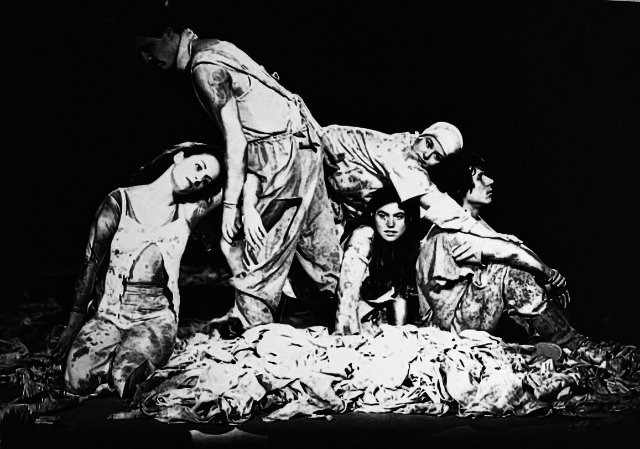 Rafael: The whole painting performance was like a dance. The cloth pieces took a week to dry. They were bright and colorful. And beautiful. The rag stage design costs us very little, not more than a hundred francs. I often thought of these rags later on. We made do with what we could afford.