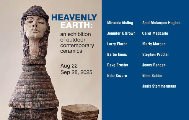Curated by Manship Artists Sharon Bates and Donna Hassler, our biennial exhibition Heavenly Earth includes some 70 pieces installed throughout the Starfield landscape and inside the Manship Barn Studio. The thirteen juried artists have responded with a range of compelling works that reflect both the thematic prompt and the natural and cultural significance of this historic setting. Work by Laraine Cicchetti is also presented in her memory.