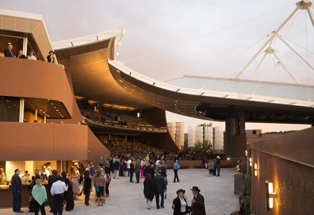 - Santa Fe Opera House – 2,000 seats, similar in size to most great European opera houses with unique design, open to nature on the sides, open backwall to stage, huge acoustic arc as ceiling, wind baffles on windward side, outdoor terraces for intermissions – It can be toured without attending opera.