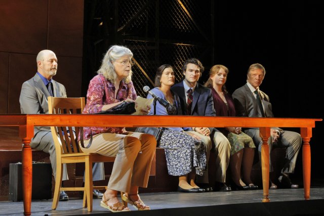 Among the many highlights of the opera, a powerful and accusatory sextet “You don’t know” involving the victims’ parents, Sister Helen, and Joseph’s mother addresses the pain and grief the parents confront, down to remembering the last, inconsequential things that they said to their lost children. In the end, an understated Mrs. de Rocher, performed by the redoubtable Susan Graham with tremulous restraint, faces grief as well. One difference is that she knows that these will be her last words to her son, and in the attempt to keep alive her hope that Joseph is innocent, she begs his silence in the plaintive “Don’t say a word.”