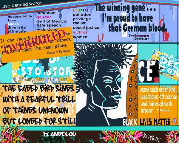 The scope of this exhibit is threefold: the personal relates to family, health & illness, farms, food, music, and quantum gravity (for no discernible reason I became very interested in it). The poetical speaks for itself, and ranges from ancient Latin to the Beach Boys, with a heavy emphasis on Eliot, Auden, Bob Dylan, and Shakespeare. Where phrases appear without attribution, they are from my original poems. Finally, the political. We are at a very dangerous turning point in this country, and I feel any and every form of protest is not only appropriate but necessary if we are to regain any semblance of a democracy.