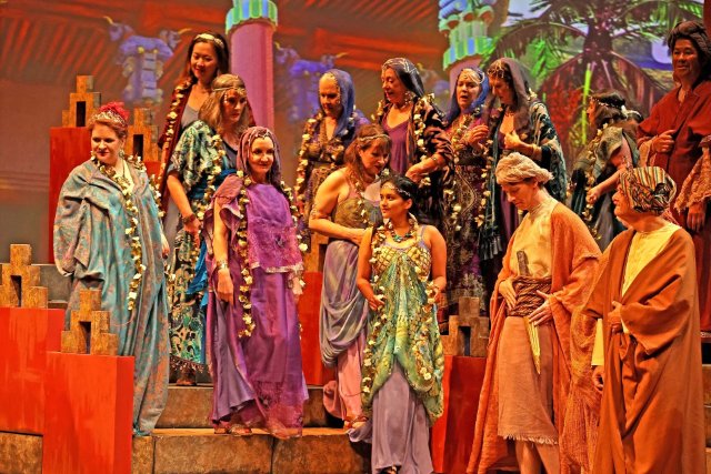 While the stage isn’t large enough to accommodate several columns from the temple physically collapsing at the conclusion, a combination of live action and graphics is used to depict the destruction. But for some reason, the simple act of the Philistines falling to the ground to demonstrate that Samson destroyed everyone in the temple does not occur. Notwithstanding these minor quibbles, the opera and this production are highly worthy and enjoyable.