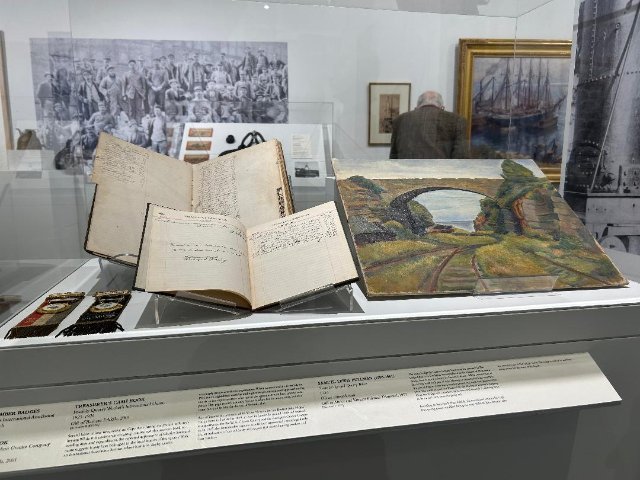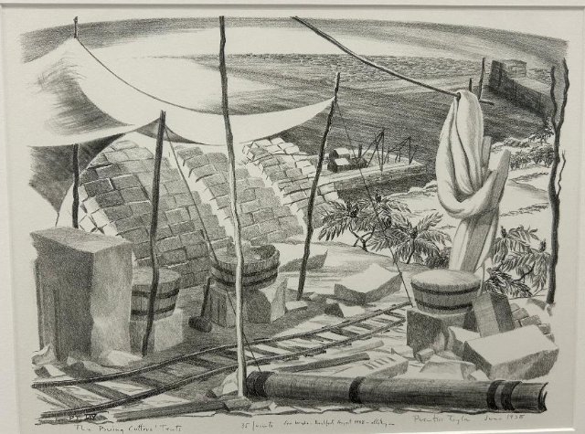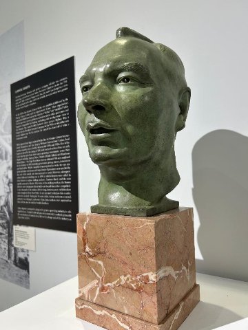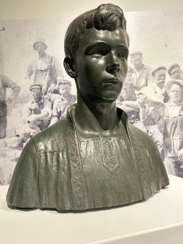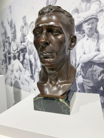 That is conveyed in a mix of bronze busts by such eminent sculptors as Walker Hancock and George Demetrios. Hancock depicts young boys while Demetrios had an eye for his ethnic neighbors who worked the quarries. There were representational landscapes and portraits as well as prints. There are intervals of engaging with photo murals of the ruddy workers and the now rusty tools of their abandoned trade. In vitrines we see such vintage items as union badges and account books.